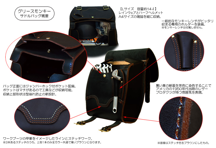 Rough Tail Leather Works Original Saddle Bags GREASE MONKEY SADDLE BAG LARGE SIZE (グリースモンキー サドルバッグ ラージサイズ) |