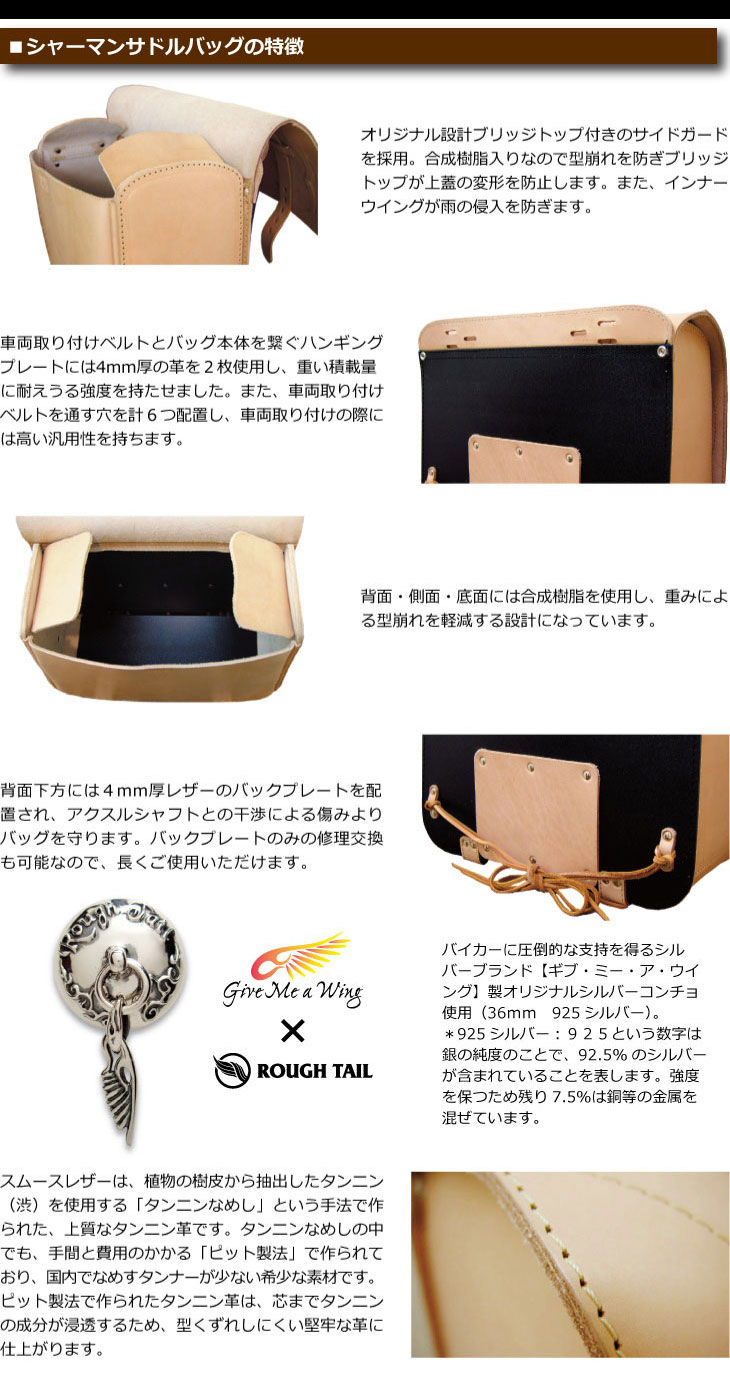 Rough Tail Leather Works Original Saddle Bags SHAMAN EAGLE WIND LARGE SIZE (シャーマン イーグルウィンド ラージサイズ) |