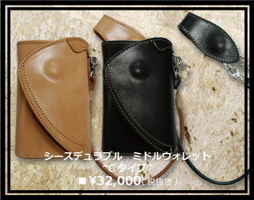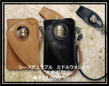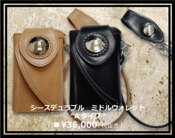 ナイフケースをイメージしたデザインのシースを、よりヘビーデューティーに 仕上げた 「シースデュラブル」。 バイカー向けの使いやすさはそのままに、インナーに内張りを追加、ロープとの 連結部にオリジナルパーツを採用するなど、堅牢さをましたモデルです。 ズッシリとした重量感と存在感を感じてください。 |
